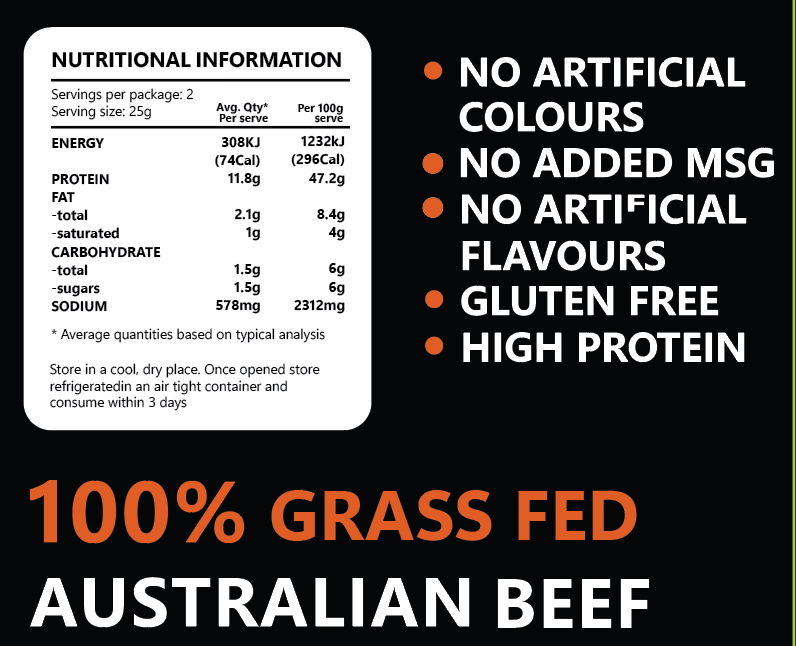 Ps. You might notice a bit of natural ash on our smoky jerky - it's completely normal and part of the authentic smoking process. Packed with flavour, not fuss.